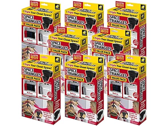 - Create more closet space: cramped, cluttered closets make it impossible to find what you need. RUBY Space Triangles vertically hang items, creating up to 3X more closet space! Plus, a cramped closet means wrinkled clothes, not anymore!
