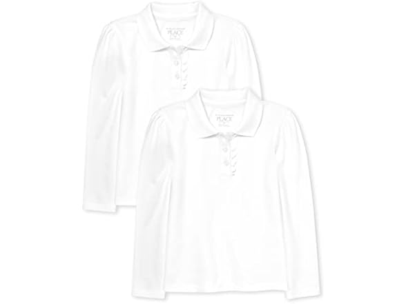 The Children's Place Girlss and Toddler Girls Long Sleeve Ruffle Pique Polo, White, 3T