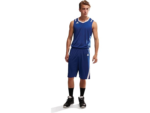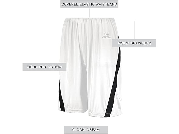 Russell Athletic Athletic Cut Basketball Shorts White/Black (XL)