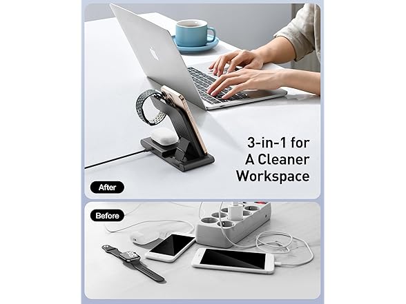 - 3 in 1 Wireless Charger Station: Is the ultimate 3-in-1 charging solution for all Apple devices and other models.Simultaneously charge your iPhone, Apple Watch and Air Pods, with a quick 2.5-3 hour full charge to meet all your charging needs at once (Note: (mobile phone case try not to exceed the thickness of more than 2mm to avoid charging).