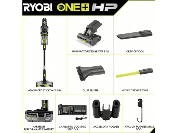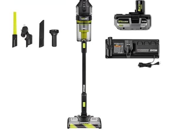 RYOBI ONE+ HP 18V Brushless Cordless Advanced Whisper Series Stick Vacuum Kit with 4.0 Ah Battery and Charger