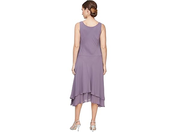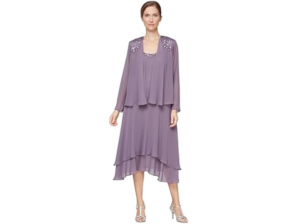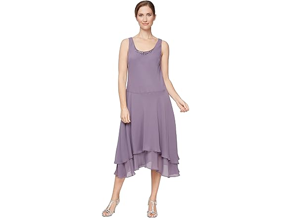 S.L. Fashions Women's Mother of The Bride Dress with Embellished Neckline & Shoulder, Wedding Guest (Petite and Regular Sizes), ICY Orchid, 18