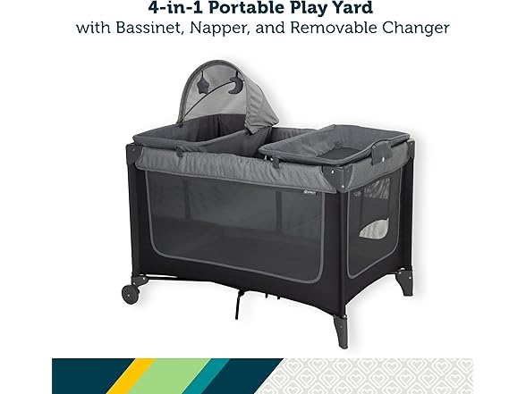 Safety 1st 3-in-1 Portable Play Yard with Bassinet, Napper, and Removable Changer, Gray