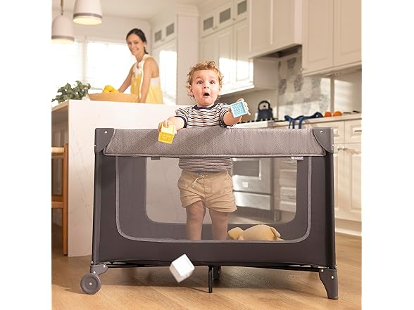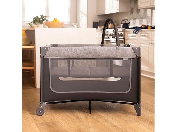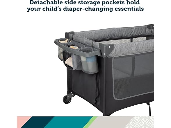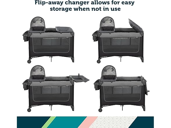 Safety 1st 4-in-1 Portable Play Yard with Bassinet, Napper, and Flip-Away Changer, Gray