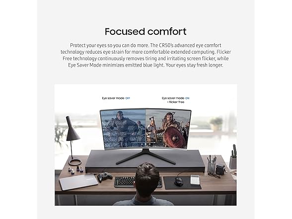 - KEEP IT EASY ON THE EYES: Care for your eyes and stay comfortable, even during long sessions; Advanced eye comfort technology reduces eye strain by minimizing blue light and reducing irritating screen flicker
