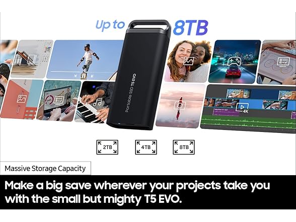 Samsung T5 EVO Portable SSD 8TB, USB 3.2 Gen 1 External Solid State Drive