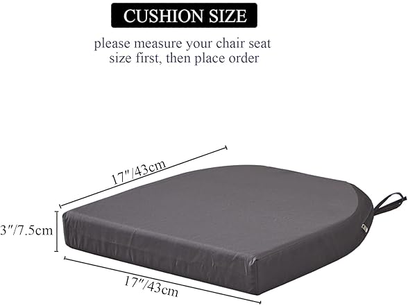 【UV Resistant & Waterproof Polyester Cover】Outdoor Seat Cushions for Patio Furniture size is 17 x 17 x 3 inch. Samty Solution-Dyed & waterproof fabric is used to ensure that each fiber is deeply dyed, and keep rain out and protect the inside foam. It can also maintain vitality even after extensive use, and can withstand 1500 lightfast hours of UV fade resistance. 【 Non-Slip Bottom & Back with Ties】Samty outdoor chair cushions all made with non-slip bottom and back with ties. Professional Non slip bottom and back with ties keeps outdoor chair cushion from moving and more comfortable to sit. Those chair cushions for outdoor furniture are also easy to maintain and clean, just wash the cover by washing machine. 【Removable & Washable Cover】Patio chair cushions are made with zippered cover which is removable and washable. Zipper lock keeps cushion tight closed and assists in cushion stuffing. 【Super Comfortable】3 Inch thickness high resilience foam provide you superior comfort with excellent elasticity supporting and long-lasting recovery ability, and relieve buttock pain, it not only gives you enough support, but enables the cushion to maintain its original shape after sitting on that for a long time. 【Multi-Purpose Usage】Suitable for outdoor chair cushion, loveseat sofa or couch pad, chair pads, patio seating pad, floor cushion, furniture replacement cushions as well as kitchen dining cushions, or other indoor area seat pad, home and commercial upholstery applications.