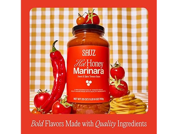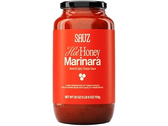 Sauz | Hot Honey Marinara (Single Jar) Thick & Creamy- Gluten-Free, Non-GMO, and 100% Delicious - Crafted in Small Batches for Michelin-Star Delight - Clean ingredients 25 OZ
