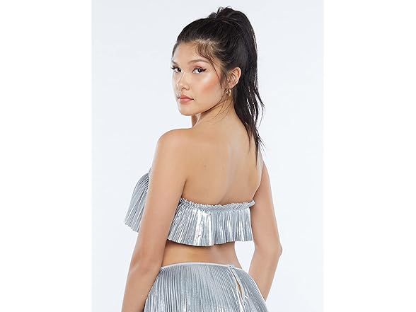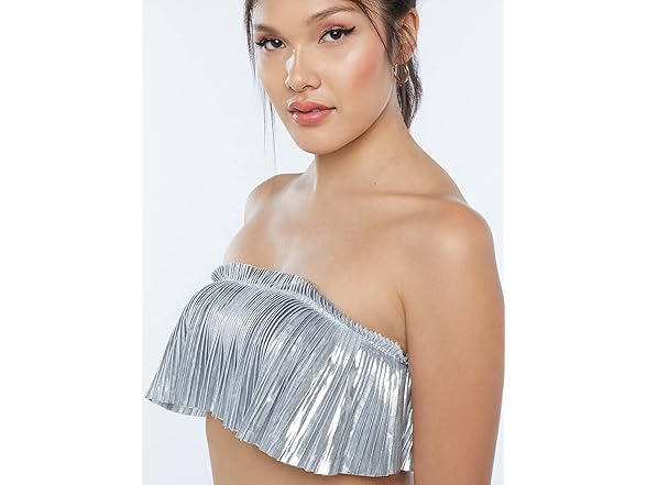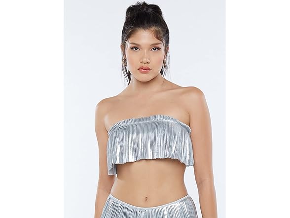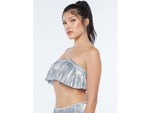Savage X Fenty, Women's, Pleated Lamé Bandeau Bralette, Spaced Out Metallic Silver, M