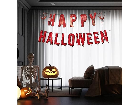- Realistic Design - made of thin and bendable PVC material, Halloween banner are durable and waterproof, shiny like metal, looks very realistic. Stringed with tough hemp rope. Reusable, perfect for halloween decorations outdoor.