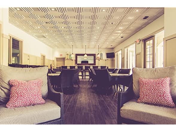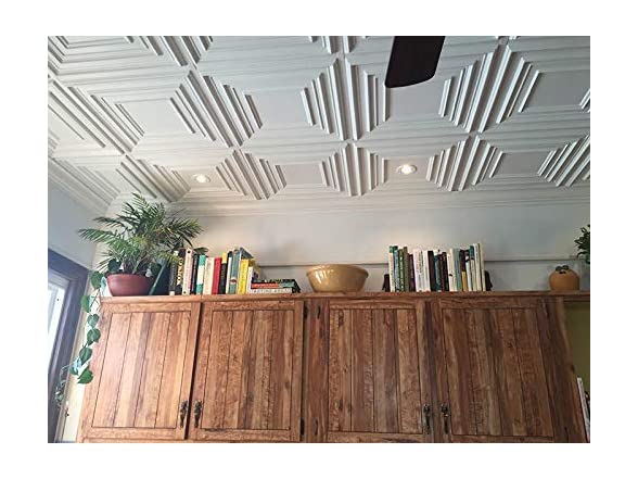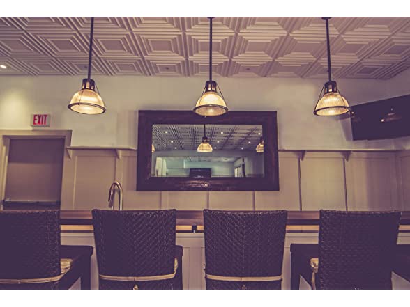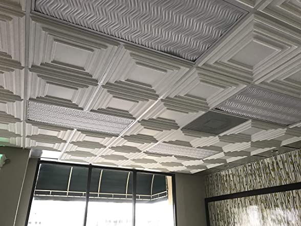 - Tin look & no metal echo, easy glue up installation, or drop in grid system