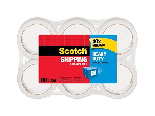 Scotch Heavy Duty Shipping Packaging Tape, 1.88" x 38.2 Yards, 3" Core, Clear, Great for Packing, Shipping & Moving, 6 Rolls (3850-6)