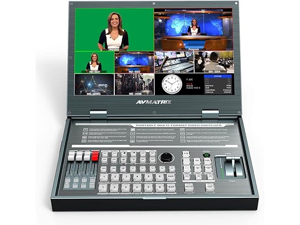 • AVMATRIX PVS0615U 15.6 Inch Portable 6 CH Multi-Format Streaming Switcher with USB Capture For Streaming and T-Bar Transition