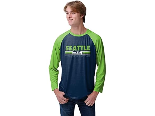 Seattle Seahawks NFL Mens Colorblock Wordmark Raglan T-Shirt