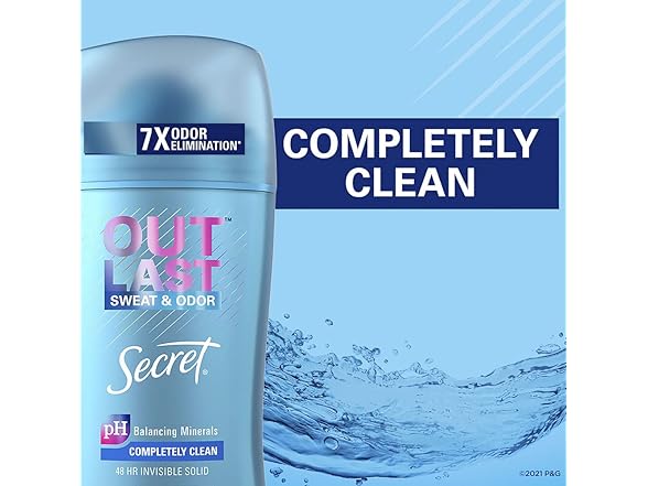 Secret Outlast Invisible Solid Antiperspirant Deodorant for Women, Completely Clean, 2.6 oz - 3 Pack