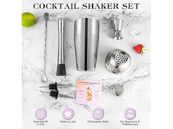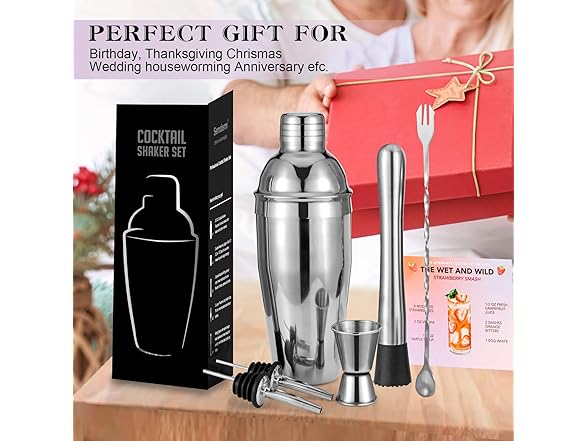 - 【A Stylish Gift】Packaged in a sleek box, this drink mixer set is the ideal gift for cocktail lovers, whether they're just getting started or already seasoned mixologists. Shakers bartending comes with a handy recipe guide, offering plenty of inspiration to help anyone create the perfect cocktail. It's a must-have gift for friends, family, and colleagues.