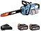 In the Box: (1) Battery powered chainsaw, (1) 14'' bar and chain cover, (2) *4 Ah batteries, (1) charger.