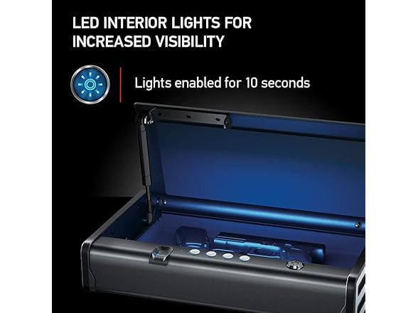 - STYLISH: Handgun safe has sleek black exterior with a blue LED light inside for visibility even at night