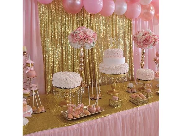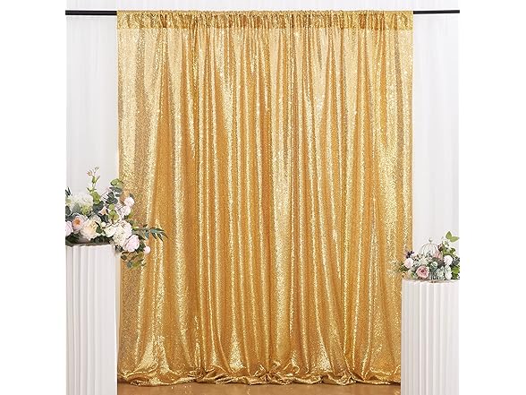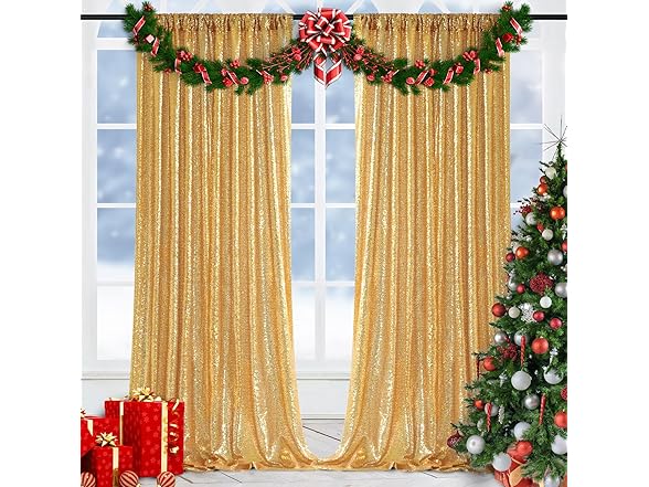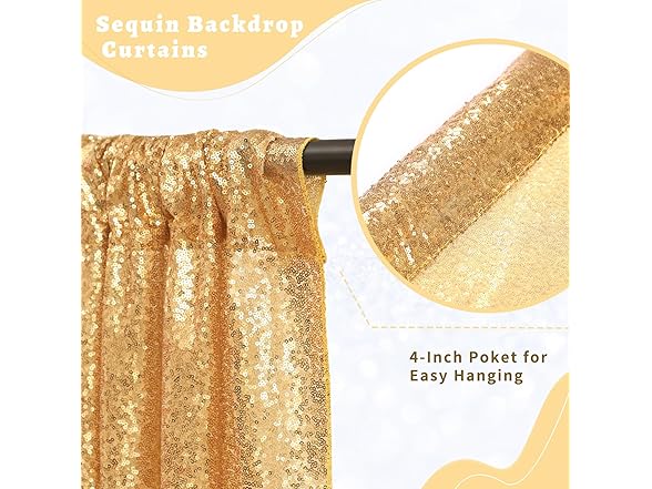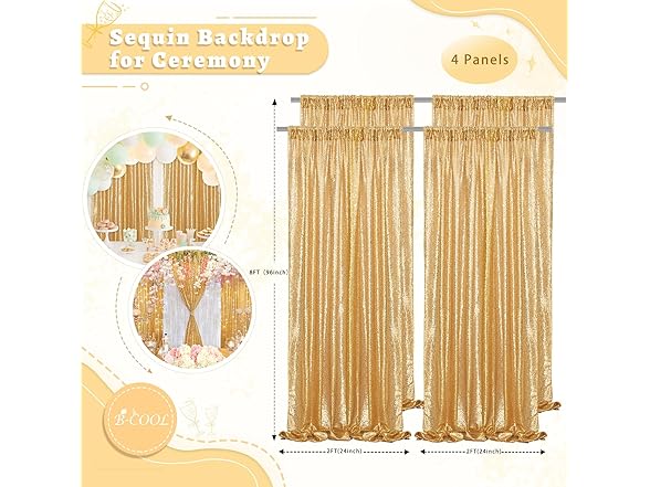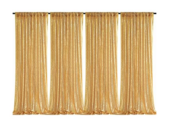B-COOL Sequin Backdrop Curtain Gold Curtains 4 Panels 2'x8' Glitter Shimmer Fabric Sparkly Drapes for Background Wedding Banquet New Year Party Decorations