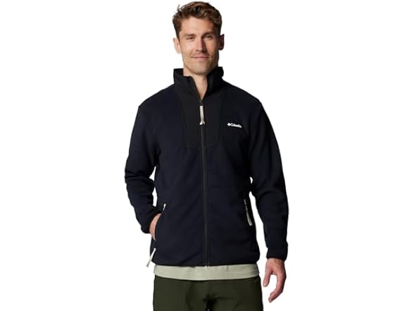 Columbia Men's Sequoia Grove Full Zip Fleece, Black/Black/Ancient Fossil Pulls, Large