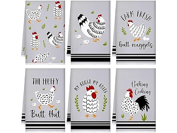 - What You Get: you will receive a total of 6 different styles of chickens themed kitchen towels, with enough quantity and novelty styles to meet your daily needs for cleaning kitchen dishes, and you can also share them with your family and friend