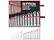 The wrench organizer contains 12PCS ratchet set in sizes 8/9/10/11/12/13/14/15/16/17/18/19mm ,9PCS allen wrench 1.5/2/2.5/3/4/5/6/ 8/10mm and 1 PC Portable Suspended Canvas Bag.More sizes of wrenches can meet a variety of different scenarios