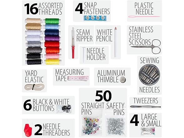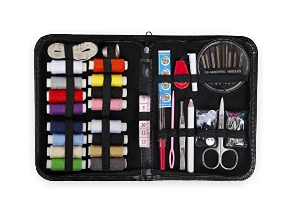 Sewing Kit for Adults Home Travel Camping and Emergency. Best Gift for Kids Girls Beginners. Quality Premium Mini Sew Supplies Set. Expansive Case with 100 Extra Pins and Safety Pins (Black, Medium)