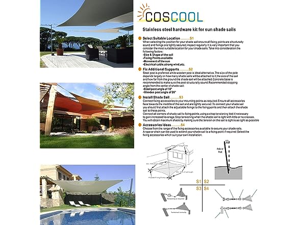 - Wind-resistant and sturdy: The hardware kit is designed to be wind-resistant and sturdy, providing a secure anchor point for shade sails even in windy conditions.