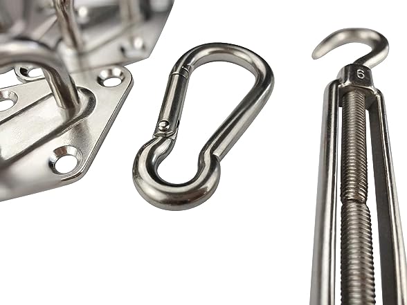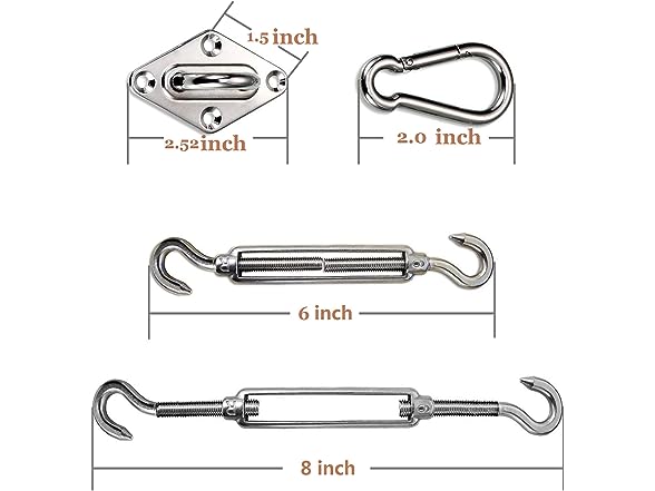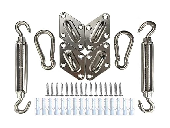 - Adjustable turnbuckles: The hardware kit includes adjustable turnbuckles (can be adjusted from 6 inches to 8 inches), allowing for easy and convenient adjustment of the tension on the shade sail. This feature makes it easier to fine-tune the shade sail's position and appearance.