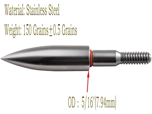 Archery Field Points,Various OD,100/125/150/200 Grains,Easy Pull Various, Stainless Steel Screw in Archery Field Tips(1 Dozen 12 PCS) (5/16, 150Grains)