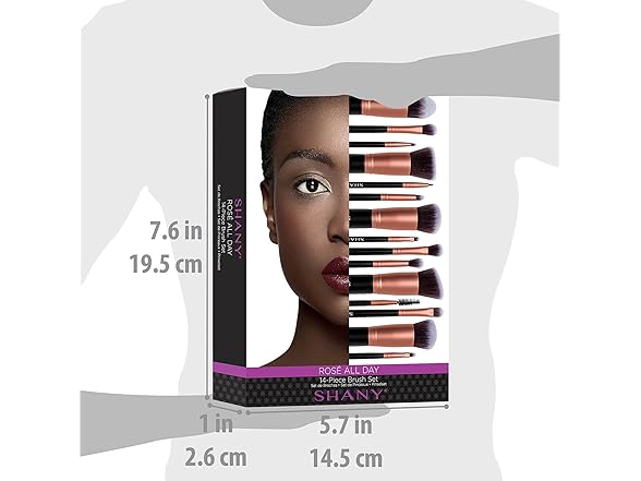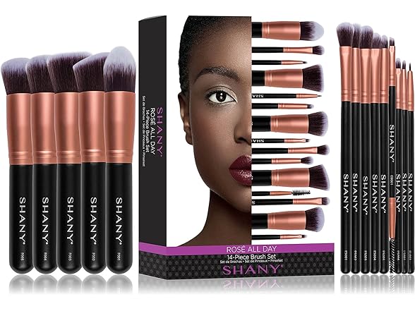 SHANY Makeup Brushes - Rose All Day - 14-Piece Brush Set – Foundation Powder Concealers Eye Shadows Makeup brushes - Complete Kabuki Makeup Brush Set in Rose Gold - 14 PCS