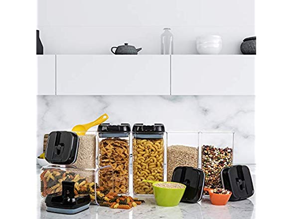 - SECURE SEALING, STACKABLE LIDS DESIGN - Once the ring on the lid is pushed down, the silicone seal inside the lid will expand to seal the jar, creating complete airtightness. Pop the ring back up and it serves as a handle to lift the lid. Provides maximum freshness and prolonged food storage. With a stackable and modular design, these containers will save you a ton of space in your pantry and cabinets for better kitchen organization.