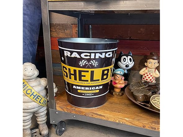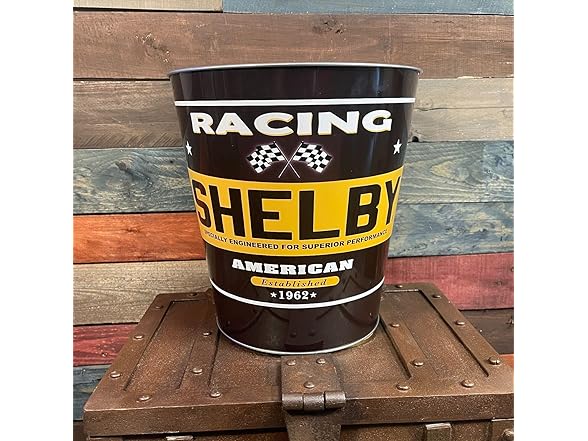 Shelby Racing Tapered Metal Trash Bin Wastebasket Vintage Inspired Retro Home Decor (10.5" Dia x 11" Tall)