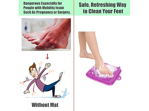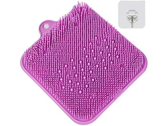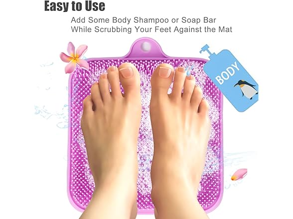 Shower Foot Cleaner Scrubber Massager, Foot Pain Tired Feet Relaxing Acupressure Mat with Non-Slip Suction Cups and Cleaning Bristles, Increase Circulation, Exfoliation (Lavender, 9.5 x 9.5 Inches)