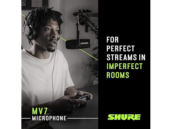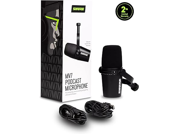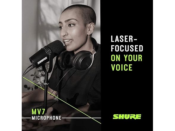 Shure MV7 USB Microphone for Podcasting, Recording, Live Streaming & Gaming, Built-in Headphone Output, All Metal USB/XLR Dynamic Mic, Voice-Isolating Technology, TeamSpeak & Zoom Certified – Black