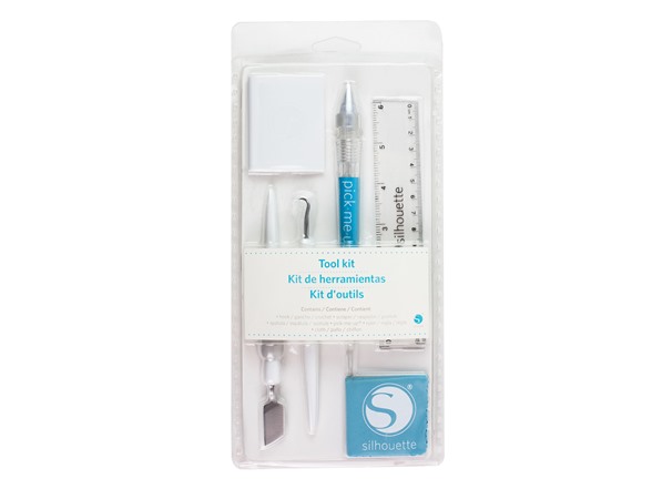 Get all the necessary tools for your Silhouette machine in one kit! This tool set comes with a hook tool for weeding vinyl and heat transfer materials, a scraper tool for scraping your mat or applying vinyl onto project surfaces, a spatula to help lift delicate cut-out pieces from the cutting mat, a pick-me-up® tool for picking up and placing small items, a 6 inch clear ruler, and microfiber cloth to clean your machine's LCD screen.