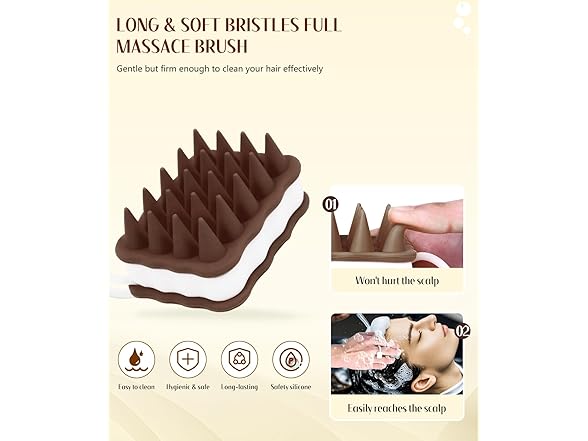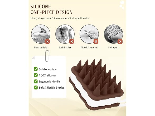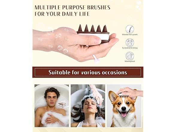 Silicone Scalp Massager Shampoo Brush for Shower, Scalp Scrubber with Soft Bristles for Hair Growth & Dandruff Treatment, Wet Dry Hair Massager for All Hair Types of Women Hair Brushes (Coffee)
