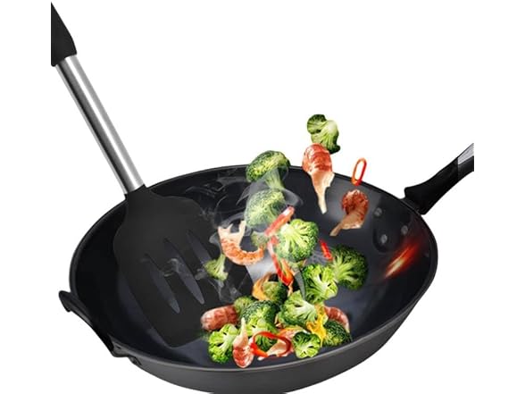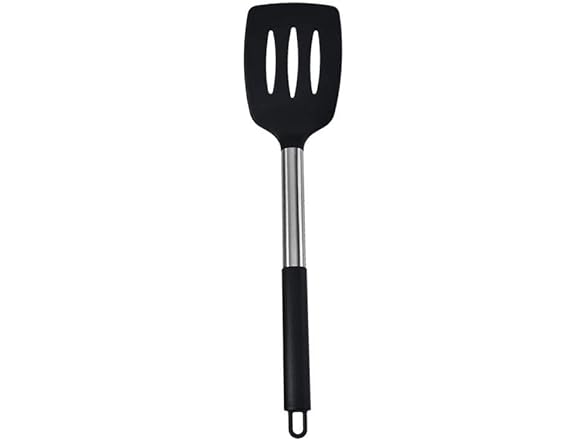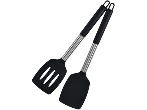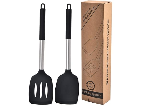 Silicone Spatula Set, BPA Free Non-Stick Stainless Steel, Microwave Safe, Set of 2 (Black) Perfect for cooking eggs, pancakes, hamburgers, high heat resistant, Large, 198168666517