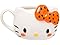 - HELLO KITTY HALLOWEEN: 3D mug is sculpted in the shape of Hello Kitty’s face. Mug features Hello Kitty complete with orange blush and a bow with black polka dots. Back of the mug has “Hello Kitty” written in orange.