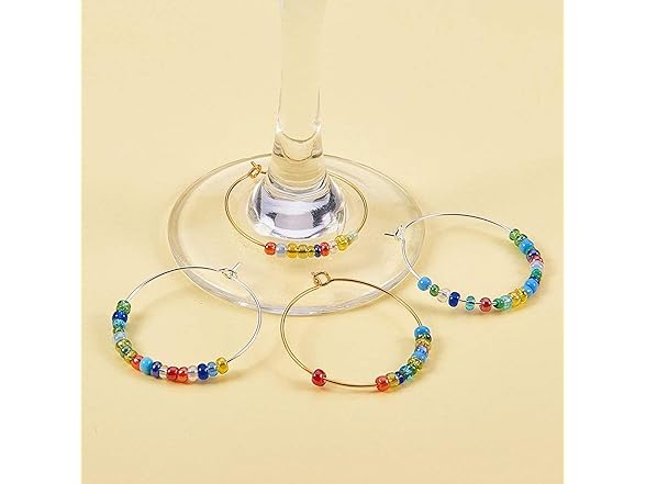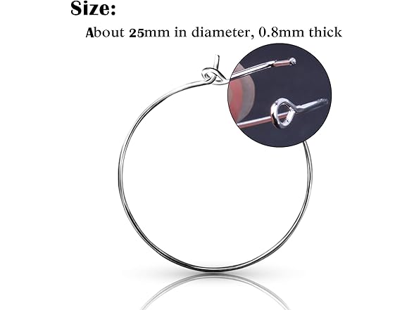 BronaGrand 100 Pieces Silver Plated Wine Glass Charm Rings Earring Hoops 25mm