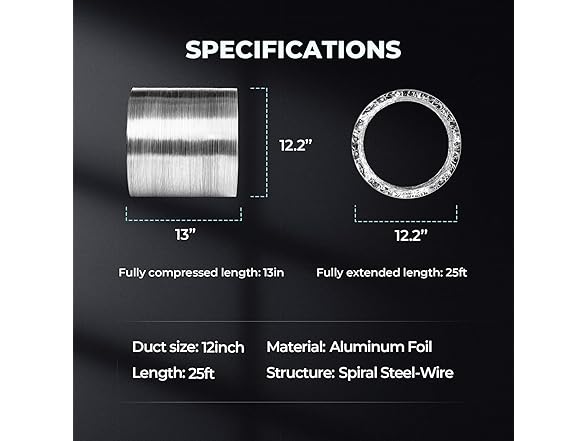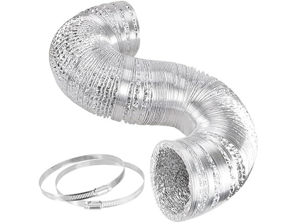 Simple Deluxe 12 Inch 25 Feet Ducting, Non-Insulated Flex Air Aluminum Foil Duct for Dryer Vent Hose, Heating, Cooling, Ventilation, Exhaust, 2 Clamps Included, Silver