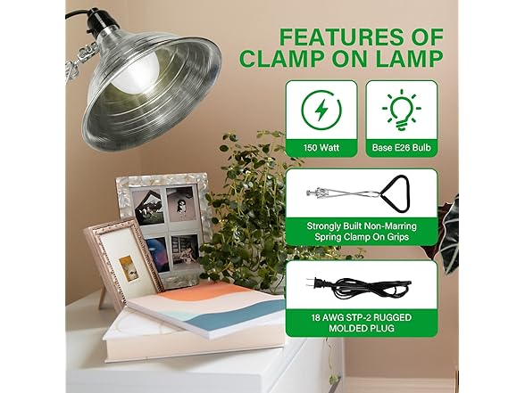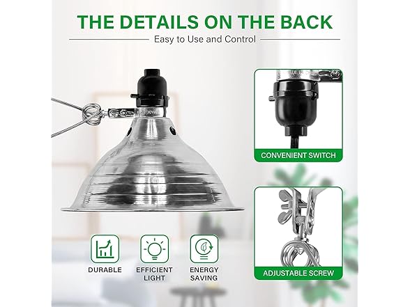 - Multifunctional: The clamp light can be used for common lighting in rooms, garages, art studios, or by photographic light. It is also ideal for amphibious and reptile pet terrarium heating lamps and even indoor plant growth lamps.