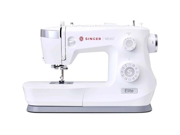Mechanically ingenious, user-friendly sewing. 110 stitch applications allow you to create projects just as intended, moving them along with grace. Increased speed & piercing power for ultimate performance 32 Stitches - basic, stretch & decorative Needle Threader to save time and get sewing faster 1-Step Buttonhole for buttonholes in four easy steps Adjustable Stitch Length & Width for complete control 6.2" sewing space (needle to tower) and 4.1" height Available in select stores Expand your sewing possibilities with all innovative features built into the SINGER Elite ME457 sewing machine — from the basic tools you’d expect to more intricate functions that are sure to inspire your creative side. Work with a wide range of fabrics and easily tackle any project. You are sure to achieve quality, consistent results thanks to a stronger motor and heavy-duty metal frame. Included accessories: All Purpose Foot, Zipper Foot, Buttonhole Foot, Blind Hem Foot, Satin Stitch Foot, 3-Pack of SINGER Needles and other essential accessories. Enhanced speed and piercing power. If you need a mechanical machine that can fly through each new project, this is the one. Extra-fine or thick fabric layers won’t present a challenge for the SINGER Elite ME457. Its strong motor and adjustable presser foot pressure are cleverly engineered for thick or thin fabrics. Built-in reliability meets adjustability. The sturdy, full-metal frame of the SINGER Elite ME457 - Mechanical Sewing Machine provides the steady support and the long-lasting durability you expect from the SINGER brand. Even at top speed, you can count on consistent results with each new stitch. Dial your settings. Your SINGER Elite ME457 - Mechanical Sewing Machine comes with an automatic one-step buttonhole feature, which allows you to easily make beautiful buttonholes, perfectly sized for your button. Explore customization of your stitches with the adjustable stitch width and length. The needle position is adjustable to three positions, allowing for a wide variety of stitch techniques like zipper insertion, topstitching, and more. Always a quick start and smooth finish. The easy to follow threading guides, and integrated needle threader will get each project going with minimal effort. Drop feed on the SINGER Elite ME457 - Mechanical Sewing Machine makes button-sewing, free-motion quilting, and monogramming a snap. Use the five included presser feet to enhance your machine’s capabilities. The SINGER Elite ME457 also comes complete with other accessories like bobbins, spool holders, needles and more. The top drop-in bobbin allows you to easily monitor your thread supply, so you don’t run out of thread in the middle of a seam. All the comforts and conveniences. Vibrant LED lighting displays a clear view of the sewing area while reducing shadows as you insert bobbins and sew. You’ll find the compact and user-friendly free arm makes it a cinch to sew hems and cuffs. A handy thread cutter is conveniently built into the side of the machine, so you never need to stop and find scissors. Built-In Stitches (32) Choose from a variety of stitches for basic sewing, decorative sewing, and more One-Step Buttonhole (+) Buttonholes are sewn in one easy step. Just place the button in the buttonhole foot and the machine sews a buttonhole perfectly sized for that button, delivering consistent results every time. Built-In Needle Threader (+) Effortlessly threads the eye of the needle - eliminates eye strain and saves you time Top Drop In Bobbin (+) Easy to thread and easy to see! The transparent bobbin and cover allow you to monitor your thread supply so you don't run out of thread in the middle of a seam. Machine Size (17.8 x 7.8 x 11.0) Warranty (25/2/90) Find Complete Warranty Terms Here