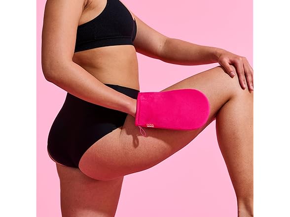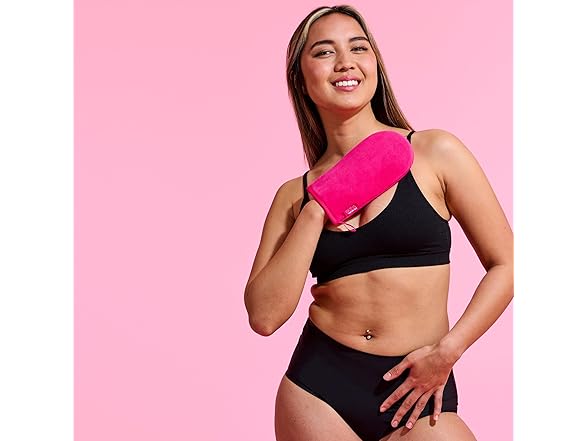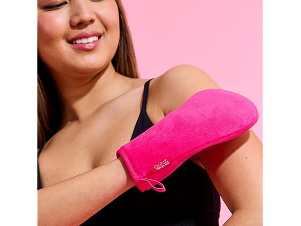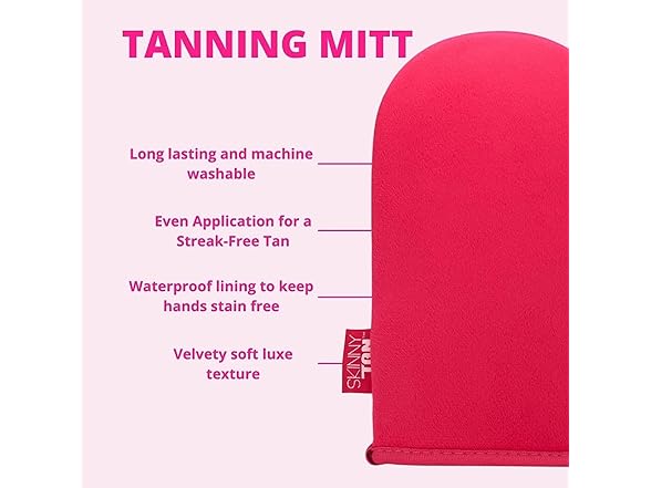 Skinny Tan Pink Velvet Tanning Mitt - Velvety Soft Luxe Texture - Waterproof Lining to Keep Hands Stain Free - Smooth for Flawless Finish - Long-Lasting and Machine Washable - 1 pc Applicator