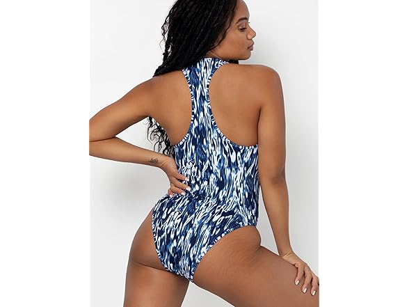 Smart & Sexy Women's Standard Racerback One Piece Swimsuit, Fluid Fantasy Print, XXL