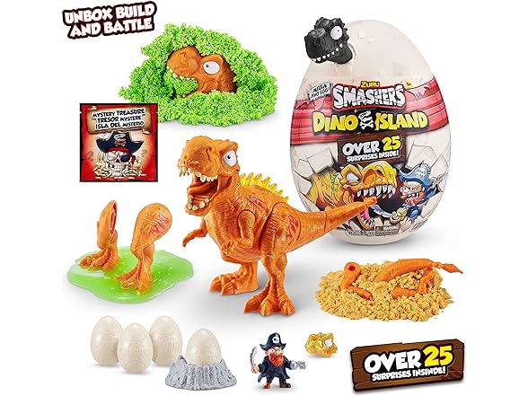 Smashers Dino Island Mega Egg T-Rex Toy by ZURU, Dinosaur Toys for Kids 5+, Includes 25 Surprises - Great Filled with Slime, Sand and More, Ages 5+