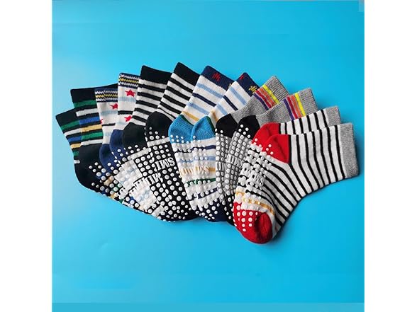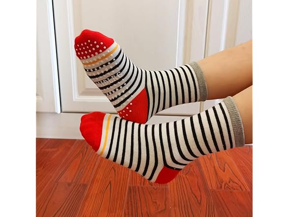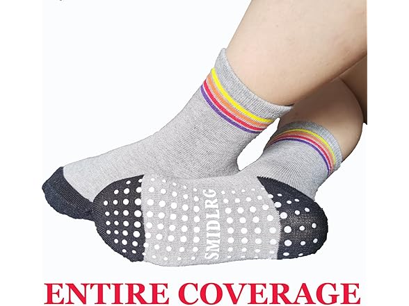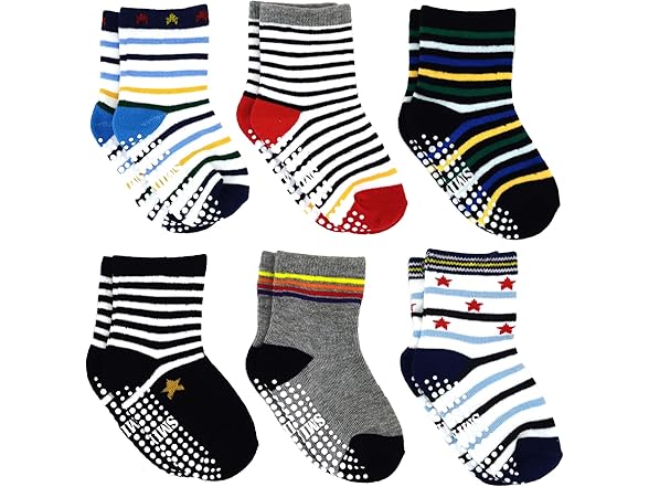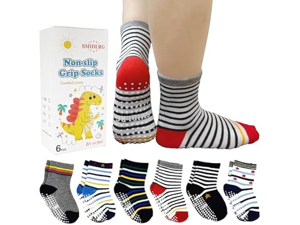 SMIDLRG Toddler Grip Crew Socks With Grippers Boys Girls Kids 1-3/3-5/5-7T 6 Pairs