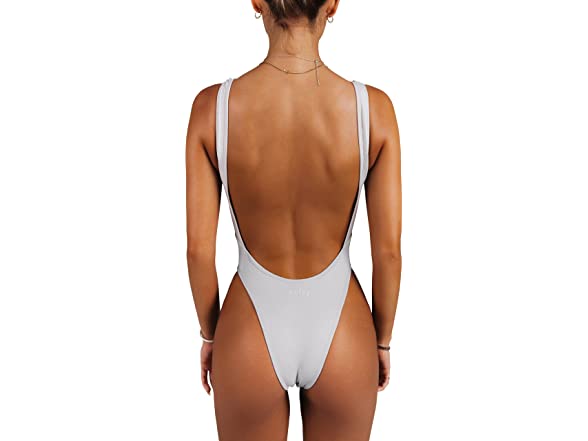 • (1) sofsy Stone Grey Black One Piece Swimsuit for Women Bathing Suit High Cut Low Back Sexy Swimwear Retro Backless 80s 90s Size Petite 0-2 Extra X-Small
