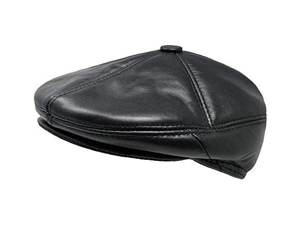 TangTown Soft Lambskin Leather Flat Cap Driving Warm Winter Ivy Hat, Large