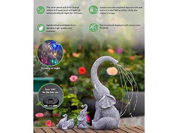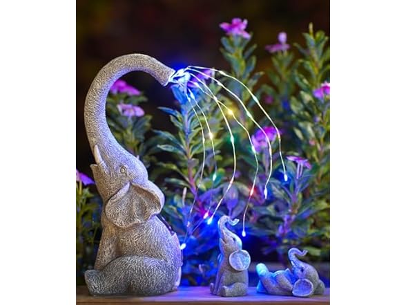 - Warm 3-color water-flow LED lights cast a 1-square-meter cozy glow, mimicking elephant trunks spraying water; mother-child design symbolizes love to turn your garden into a heartwarming outdoor space; ideal for gifting on Mother’s Day or enhancing family gatherings.